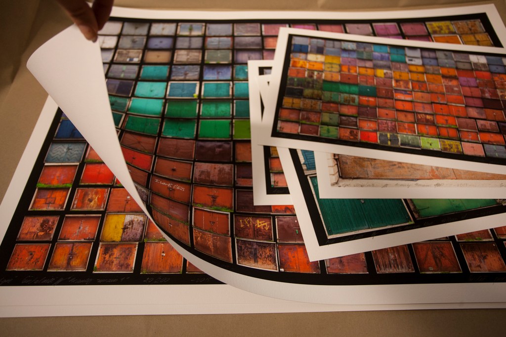The complete series involve the photographs of about 200 astonishing doors in the garage town and several mosaics.